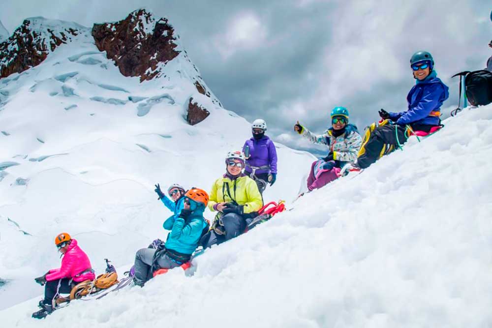 We leave Huaraz at 3 a.m. m. Driving to Punta Olimpica, we pass several smaller cities and towns, such as Marcara and Carhuaz. We started our walk before the tunnel, going up towards the Mateo mountain. Before reaching the glacier, we passed the moraine and then we started to climb with an inclination of 30 ° to 45 ° to reach the top. We enjoy magnificent views over many snow capped mountains and mountain lakes.